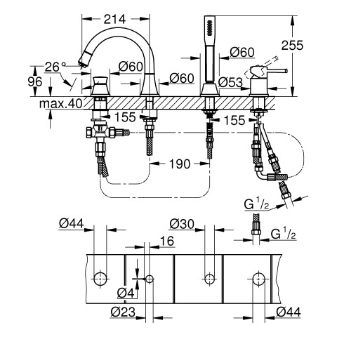 GROHE Fertigmontageset Grandera 4-Loch-Wannenkombination, chrom FG19936000