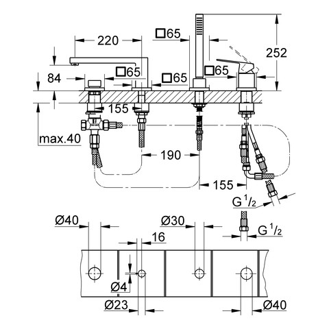 GROHE 4-Loch-Wannenkombination Eurocube hard graphite gebürstet