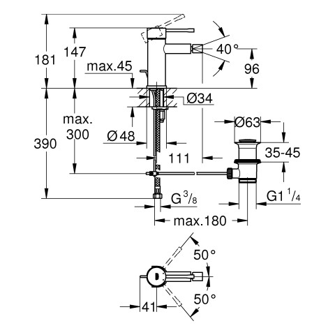 Einlochmontage, SilkMove 2,8 cm Keramikkartusche, mit Temperaturbegrenzer, Long-Life Oberfläche, Water Saving wenige Wasser, max. Durchfluss bei 3 bar 5 l/min, FastFixation Plus Schnellbefestigungssystem, Kugelgelenk-Mousseur, Zugstangen-Ablaufgarnitur 1 1/4", flexible Anschlussschläuche