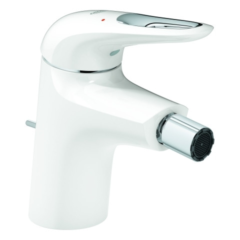 GROHE Bidet-Einhebelmischer Eurostyle 1/2", mit Zugstangen-Ablaufgarnitur, offener Metall-Hebelgriff, moon White