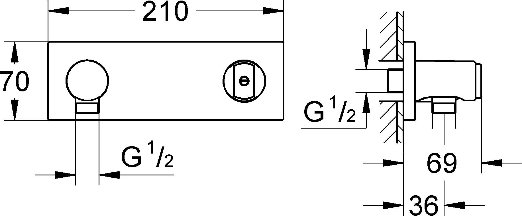 GROHE Brauseanschlussbogen Grohtherm F mit integriertem Handbrausehalter, chrom