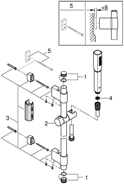 GROHE Brausestangenset Grandera Stick 90cm, 1 Strahlart, mit Durchflussbegrenzer 7,6 l/min, chrom FG26038000