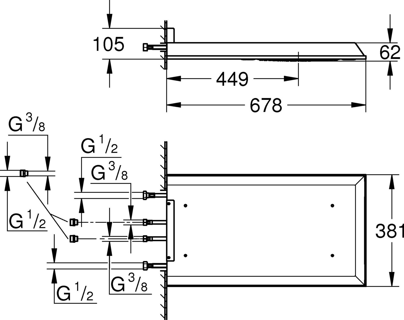 Strahlarten Brausestrahl Rain, Bokoma Spray, XL Wasserfall und Kombinationen, Material Metall, DreamSpray Strahlbild, StarLight Oberfläche, SpeedClean Antikalk-System, Durchfluss einzelner Strahlarten bei 3 bar: 1x Rain Spray 30 cm: ca. 20 l/min, 2x XL Wasserfall: 1 Wasserfall 20 l/min, 2 Wasserfälle 32 l/min, 4x Bokoma Spray mit 20° Verstellwinkel: 20 l/min, Ansteuerung der Kopfbrause über 4 Abgänge, erfordert zusätzlich Rohbauset 26 042 000