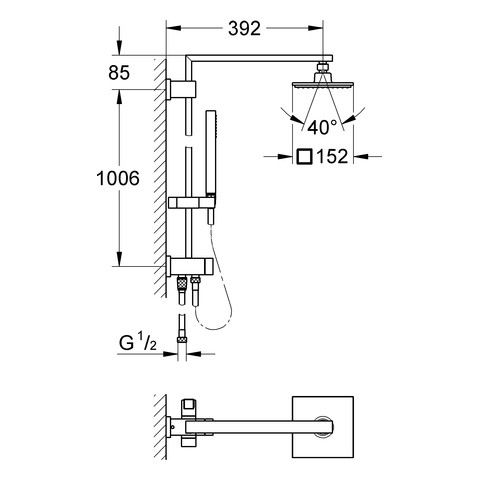 GROHE Duschsystem Euphoria Cube 152 mit Umstellung, Brausearm Ausladung 40cm, Wandmontage, chrom