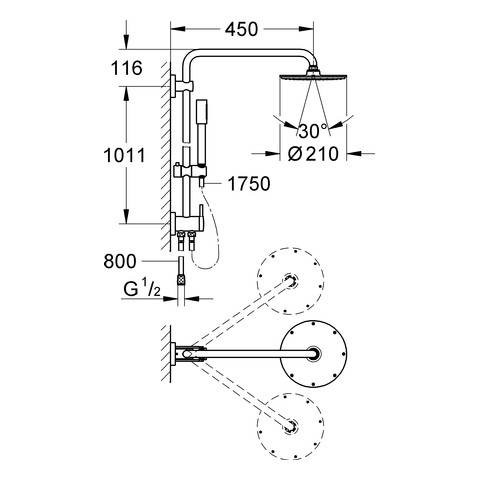 GROHE Duschsystem Rainshower 210 mit Umstellung, Wandmontage, chrom