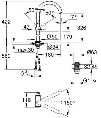 | Aufbauhöhe Unterkante Hahnauslass | 326 mm |