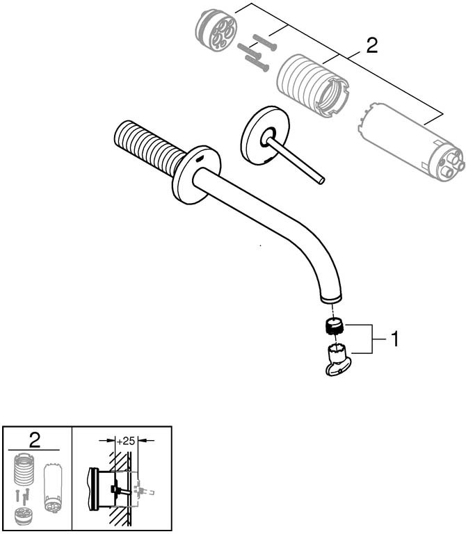 GROHE Fertigmontageset Atrio UP-2-Loch-Wandarmatur, Ausladung 22,1cm, chrom FG19918003