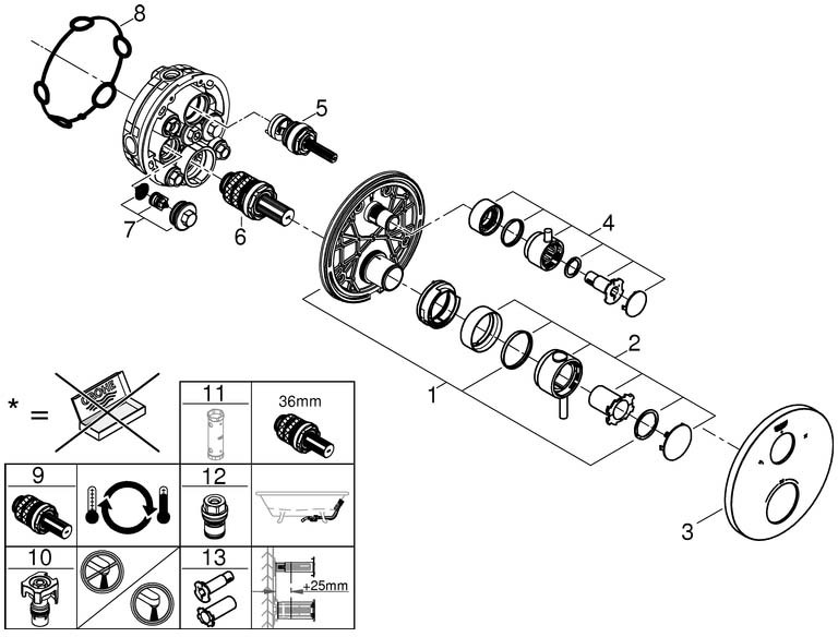 GROHE Fertigmontageset Atrio UP-Brause-Thermostat mit 2-Wege-Umstellung, chrom FG24135003