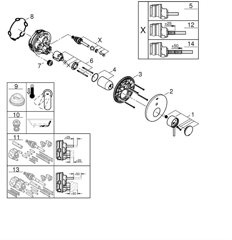 GROHE Fertigmontageset Atrio UP-Wannen-Einhebelmischer, chrom FG24066003