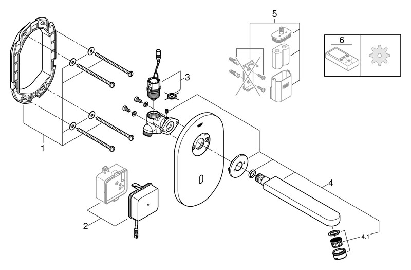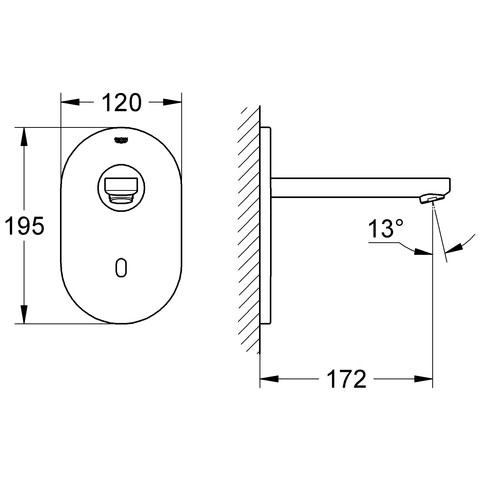 GROHE Fertigmontageset Euroeco CE Infrarot-Waschtisch-Wand-Armatur, ohne Mischung, Netzbetrieb, chrom