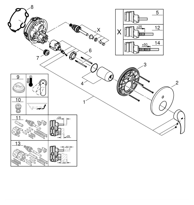 GROHE Fertigmontageset Eurosmart chrom, UP-Wannen-Einhebelmischer