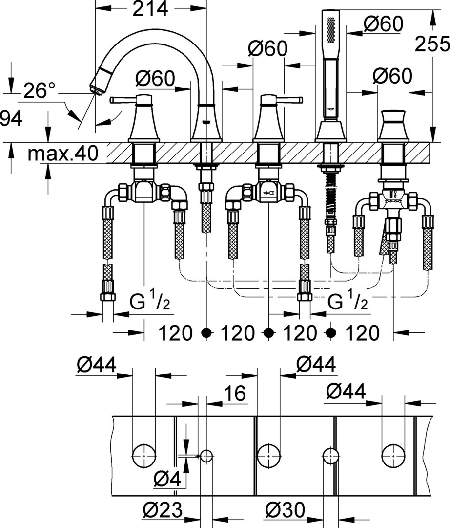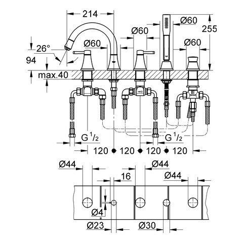 GROHE Fertigmontageset Grandera 5-Loch-Wannenkombination, chrom