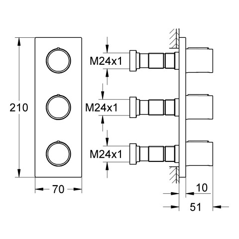 GROHE Fertigmontageset Grohtherm F UP-Ventil, 3-fach, chrom