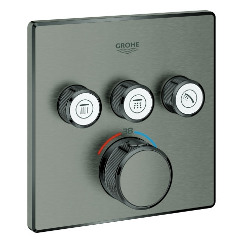 GROHE Fertigmontageset Grohtherm Smartcontrol UP-Thermostat, 3 Absperrventile, eckig, hard graphite gebürstet FG29126AL0