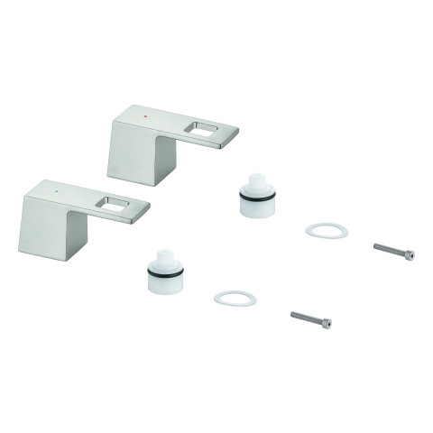 GROHE Griffpaar 48321, für Eurocube, für 3-Loch Waschtischbatterie, Markierung blau/rot, supersteel