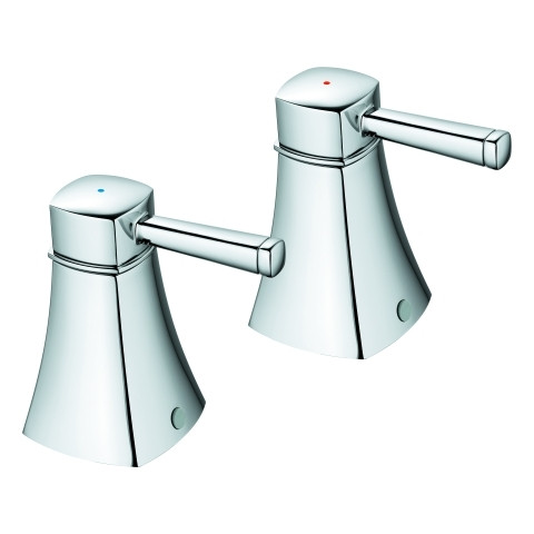 GROHE Griffpaar Grandera 48325, Metall, Markierung blau/rot, für Varianten mit Keramik-Oberteil 1/2", 90°, chrom