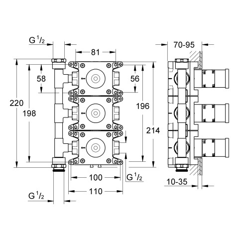 GROHE Grundkörper Rapido C UP-Ventil, 3-fach, Einbautiefe 7-9,5 cm