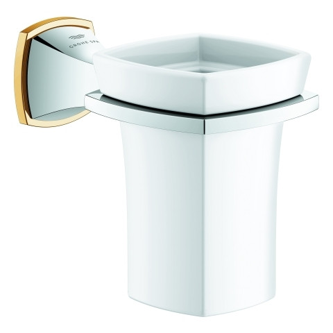 GROHE Halter Grandera mit Keramik-Mundspülglas, chrom/gold