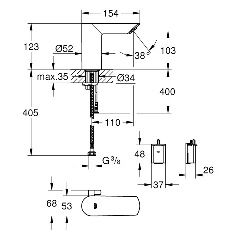 GROHE Infrarot-Waschtisch-Armatur Bau Cosmopolitan E 1/2", mit Mischung, Temperaturbegrenzer, Batteriebetrieb, chrom