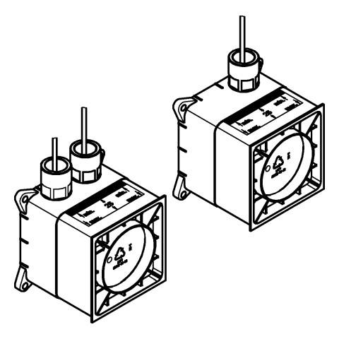 für den Einbau der Lichtmodule (36 472 000), bestehend aus 2 Rohbausets (115 x 115 x 62-87 mm), 2 Verlängerungskabel (je 5 m)