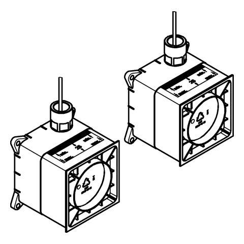 für den Einbau der Musikmodule (36 473 000), bestehend aus 2 Rohbausets (115 x 115 x 62-87 mm), 2 Verlängerungskabel (je 5 m), 1 Y-Stück