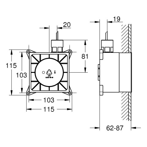 GROHE Rohbauset Rainshower F-Series 11,5 x 11,5 x 6,2-8,7 cm, für 2x Musikmodule FG29073000