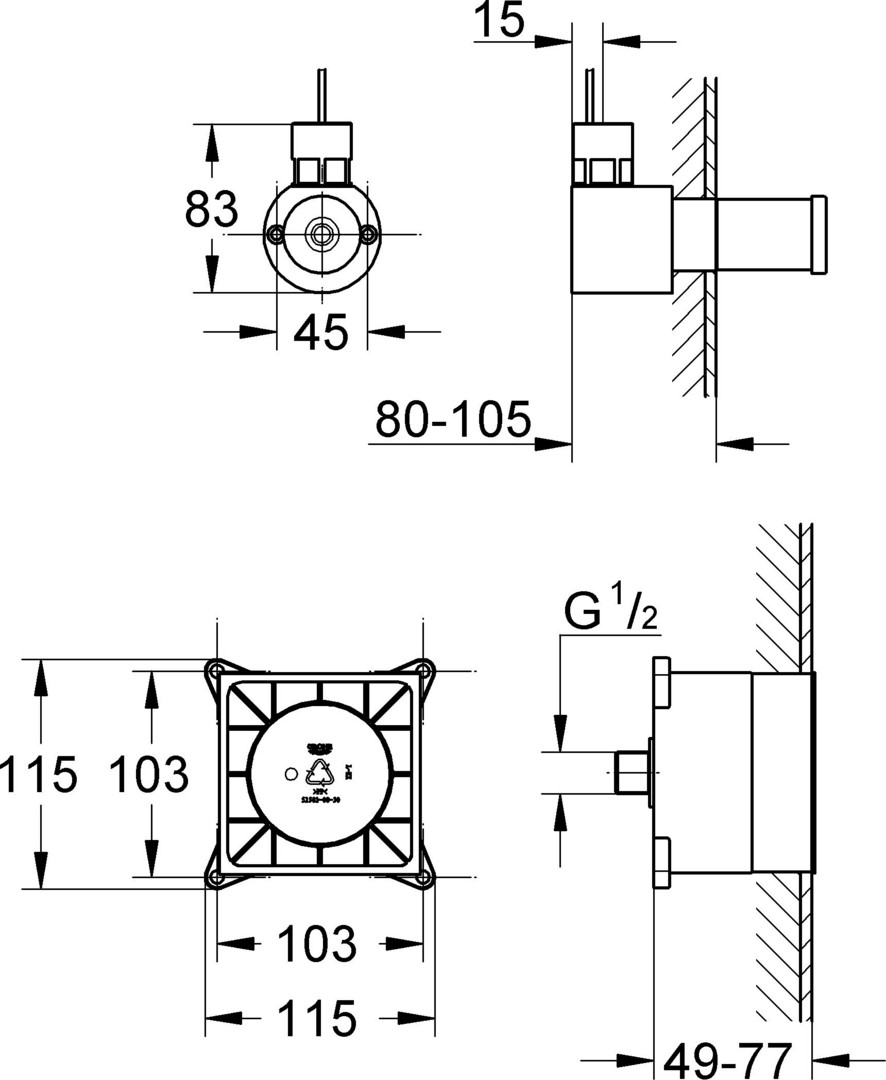 GROHE Rohbauset F-digital Deluxe für den Einbau der Dampfmodule, für Dampfgenerator