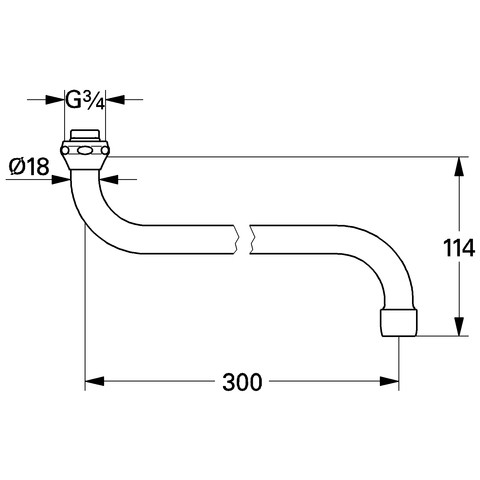 GROHE S-Auslauf 13017, für Küchen-Wandbatterien, 1/2'', Bogenauslauf, Auslauf mit Mousseur, Ausladung 301 m, chrom