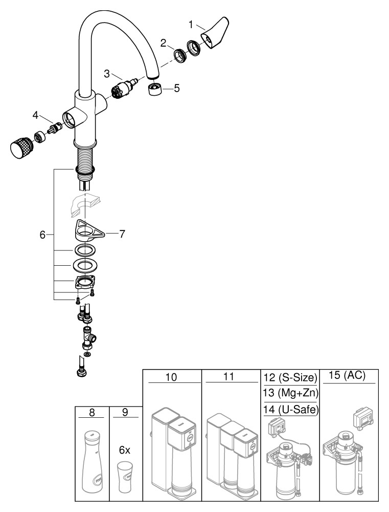 GROHE Spültisch-Einhebelmischer Blue Pure BauCurve C-Auslauf, mit Filterfunktion, chrom