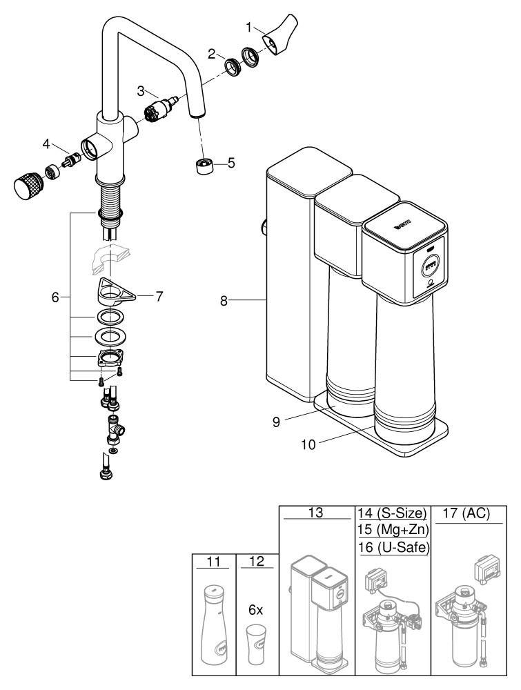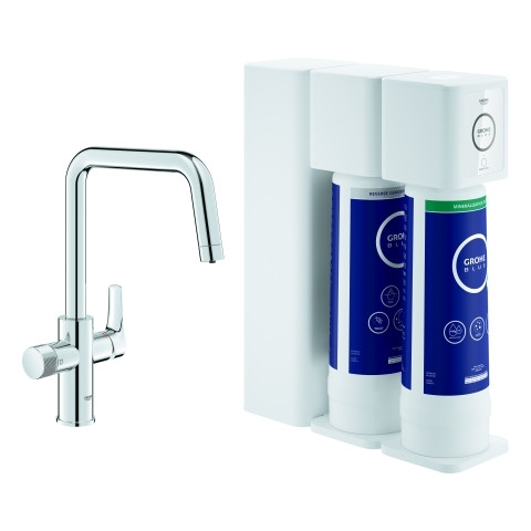 GROHE Spültisch-Einhebelmischer Blue Pure Eurosmart U-Auslauf, Starter Kit mit Umkehrosmose Filter, Mineralisierungsfilter, chrom