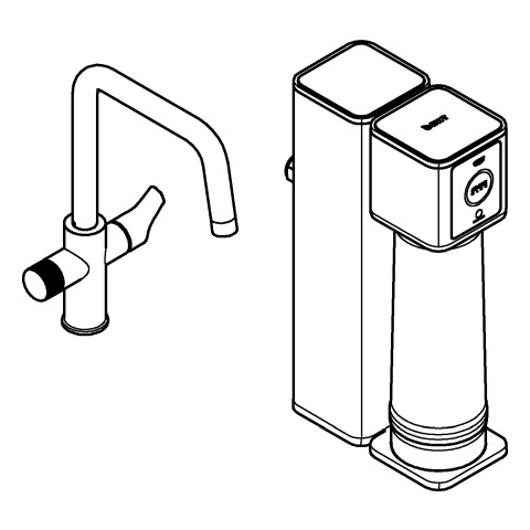 GROHE Spültisch-Einhebelmischer Blue Pure Eurosmart U-Auslauf, Starter Kit mit Umkehrosmose Filter, chrom