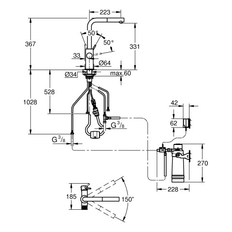 | Anschlussmaß Zufuhr | 3/8 Zoll |