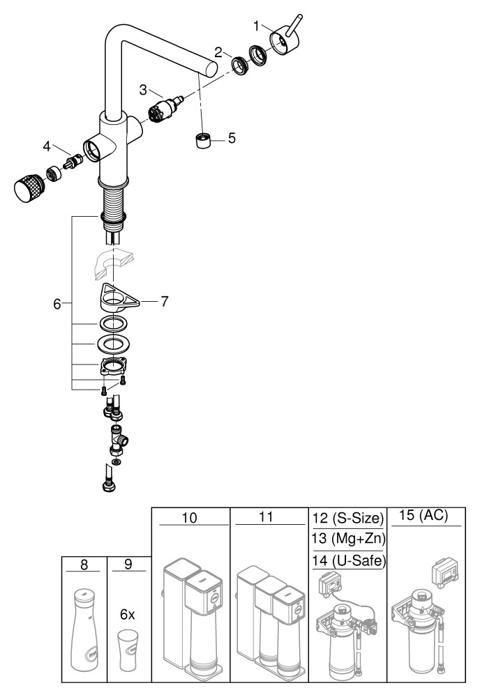 GROHE Spültisch-Einhebelmischer Blue Pure Mono C-Auslauf, Starter Kit, chrom FG30387000
