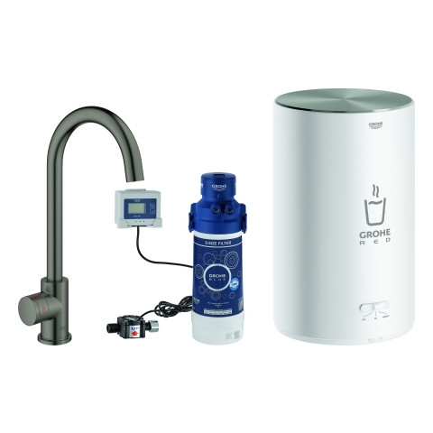 GROHE Spültisch-Standventil Red Mono C-Auslauf, mit Boiler Größe M, hard graphite gebürstet FG30085AL1