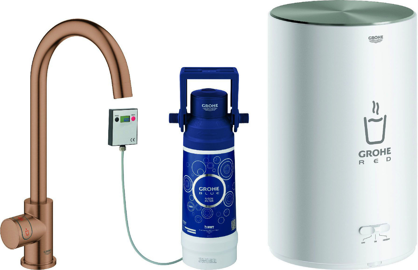GROHE Spültisch-Standventil Red Mono C-Auslauf, mit Boiler Größe M, warm sunset gebürstet FG30085DL1