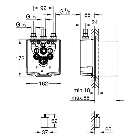 GROHE UP-Einbaukörper Eurosmart CE mit thermostatischer Mischeinrichtung, Batteriebetrieb, für Brause