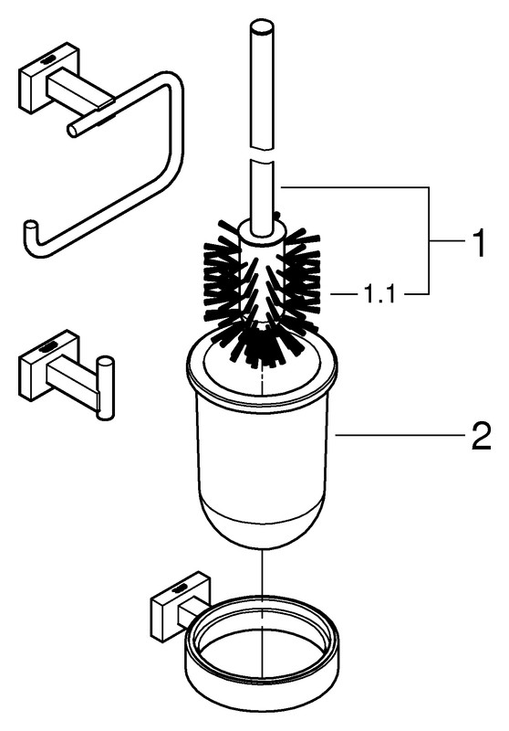 Material Glas/Metall, bestehend aus Bademantelhaken (40 511), WC-Papierhalter, ohne Deckel (40 507), Toilettenbürstengarnitur (40 513), Long-Life Oberfläche