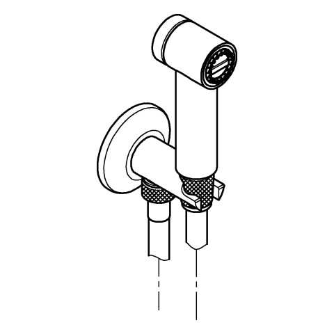 bestehend aus Handbrause mit Betätigungstaste (26 839), Absperrventil mit integriertem Brausehalter (26 842), Silverflex Long-life Brauseschlauch 1250 mm (26 335), Long-Life Oberfläche, SpeedClean Antikalk-System, TwistStop gegen Verdrehen des Brauseschlauchs