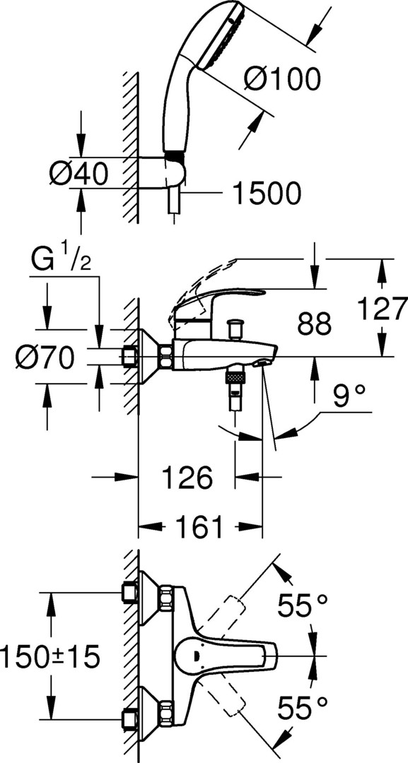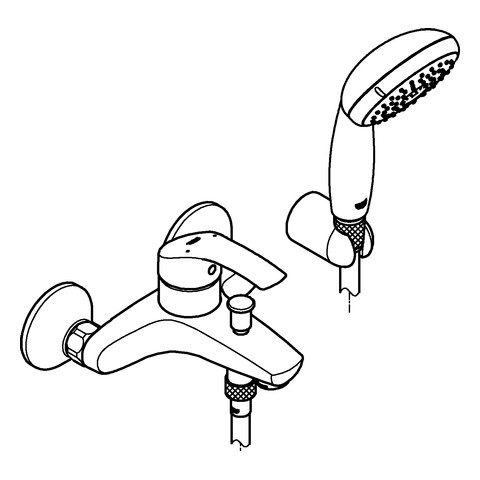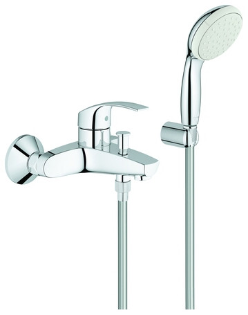 GROHE Wannen-Einhebelmischer Eurosmart chrom, mit Brausegarnitur, Wandmontage, mit Temperaturbegrenzer