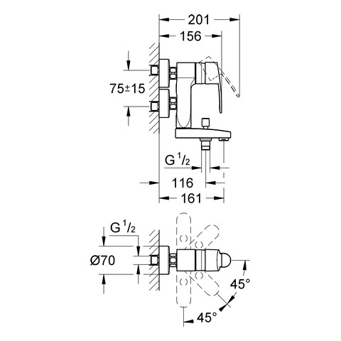 GROHE Wannen-Einhebelmischer Vertica Eurostyle Cosmopolitan 1/2", Wandmontage, chrom