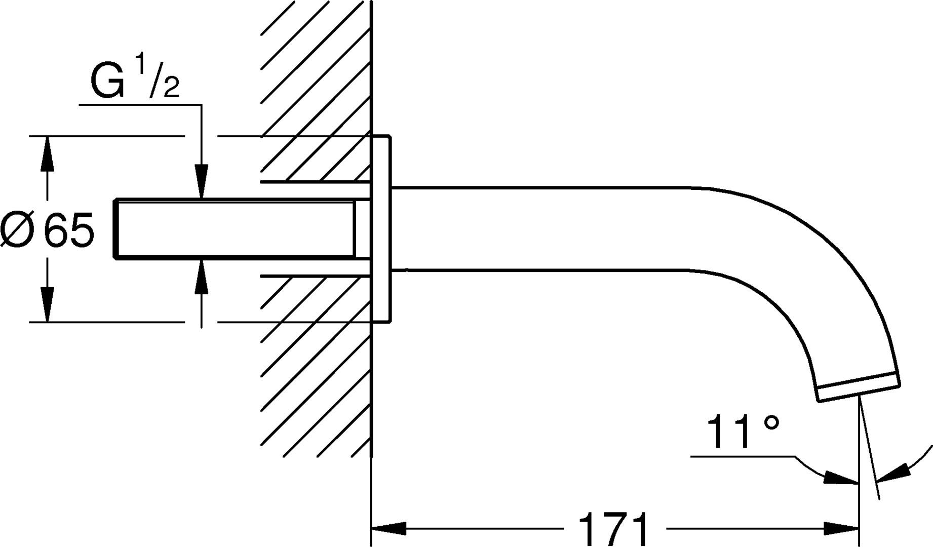GROHE Wanneneinlauf Atrio Wandmontage, Ausladung 17,1cm, chrom