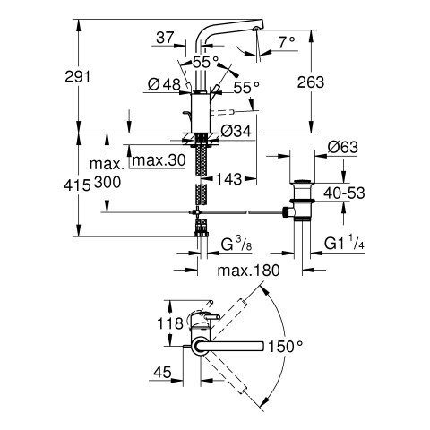 | Aufbauhöhe Unterkante Hahnauslass | 263 mm |