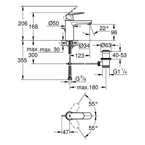 | Aufbauhöhe Unterkante Hahnauslass | 98 mm |