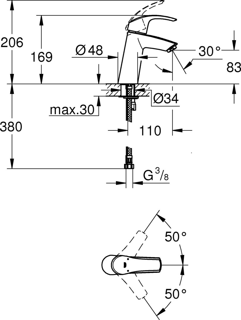 | Aufbauhöhe Unterkante Hahnauslass | 83 mm |