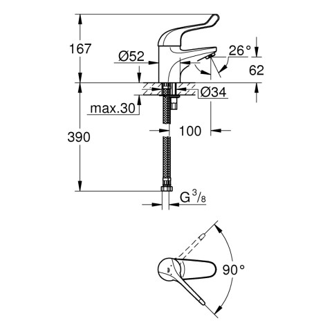 GROHE Waschtisch-Sicherheits-Einhebelmischer Euroeco Special 1/2", glatter Körper, chrom