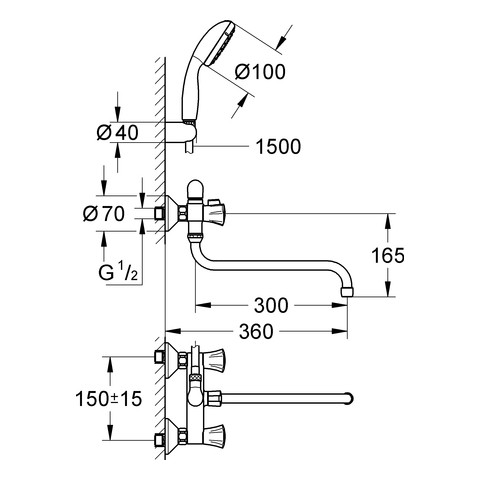 GROHE Zweigriff-Mehrzweck-Armatur Costa 1/2", mit Brausegarnitur, Umstellung, Wandmontage, chrom