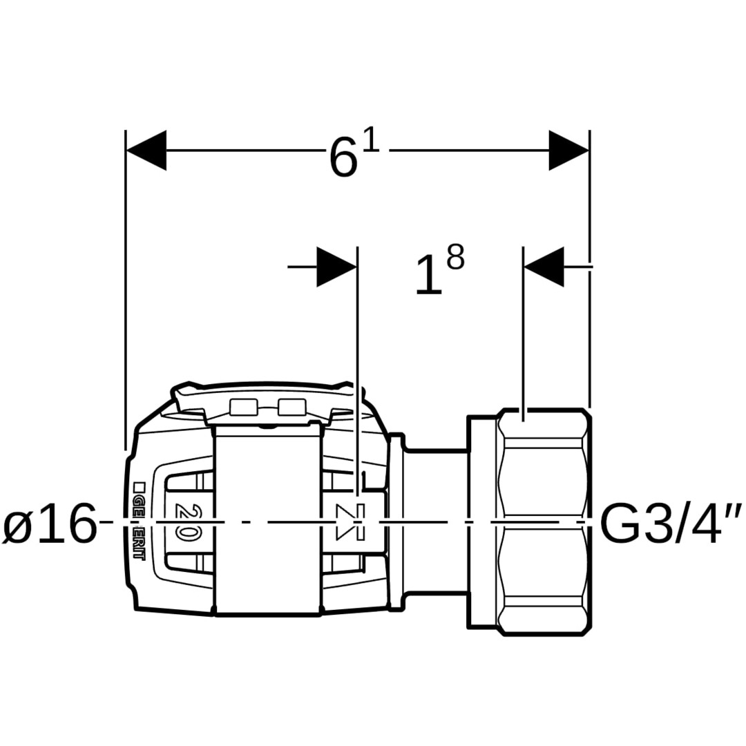 Geberit Anschluss FlowFit Ø 16 mm x G 3/4, 61 mm, für Eurokonus, mit Überwurfmutter GE619260221