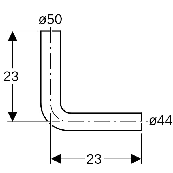 Geberit Spülbogen 90Grad, d= 50mm, 23x23cm, weiß