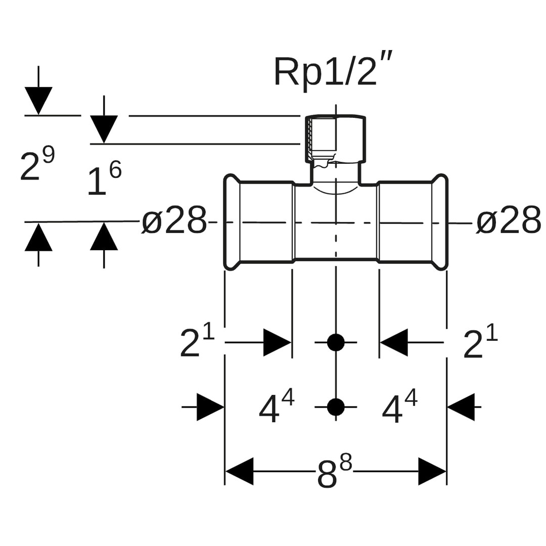 Geberit T-Stück Mapress Ø 28 mm x Rp 1/2, mit Innengewinde Rotguss, Kupfer GE61359