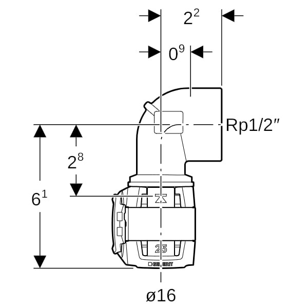 | Rohraußendurchmesser Anschluss 1 | 16 mm |